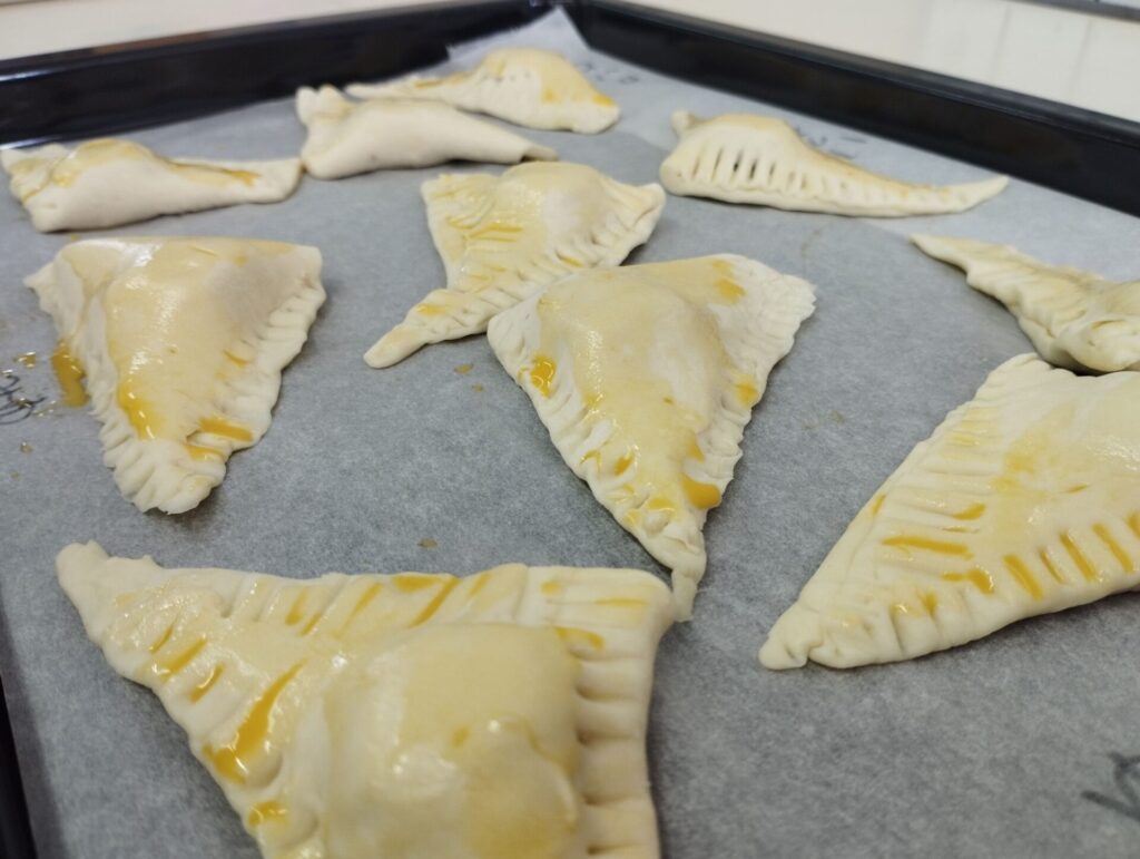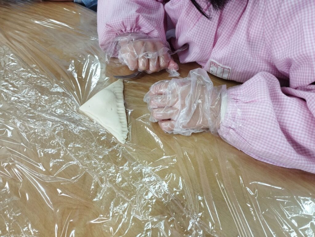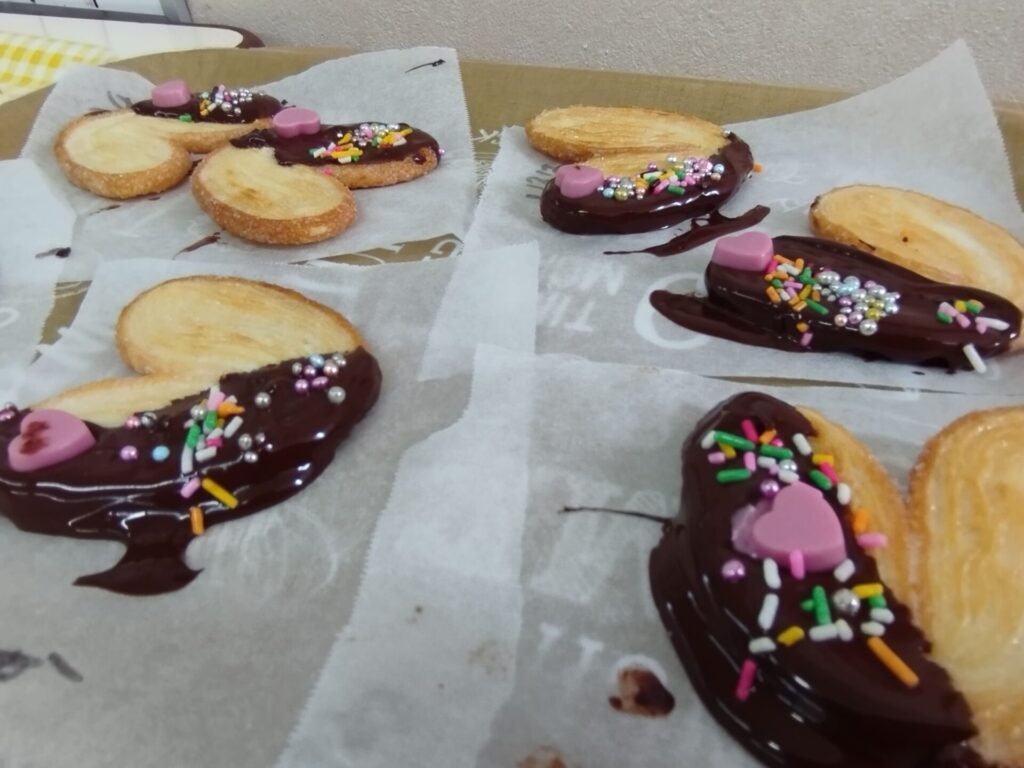 チョコをパイで包んだり、チョコをつけたり🍫