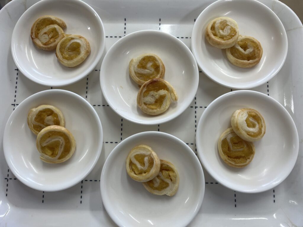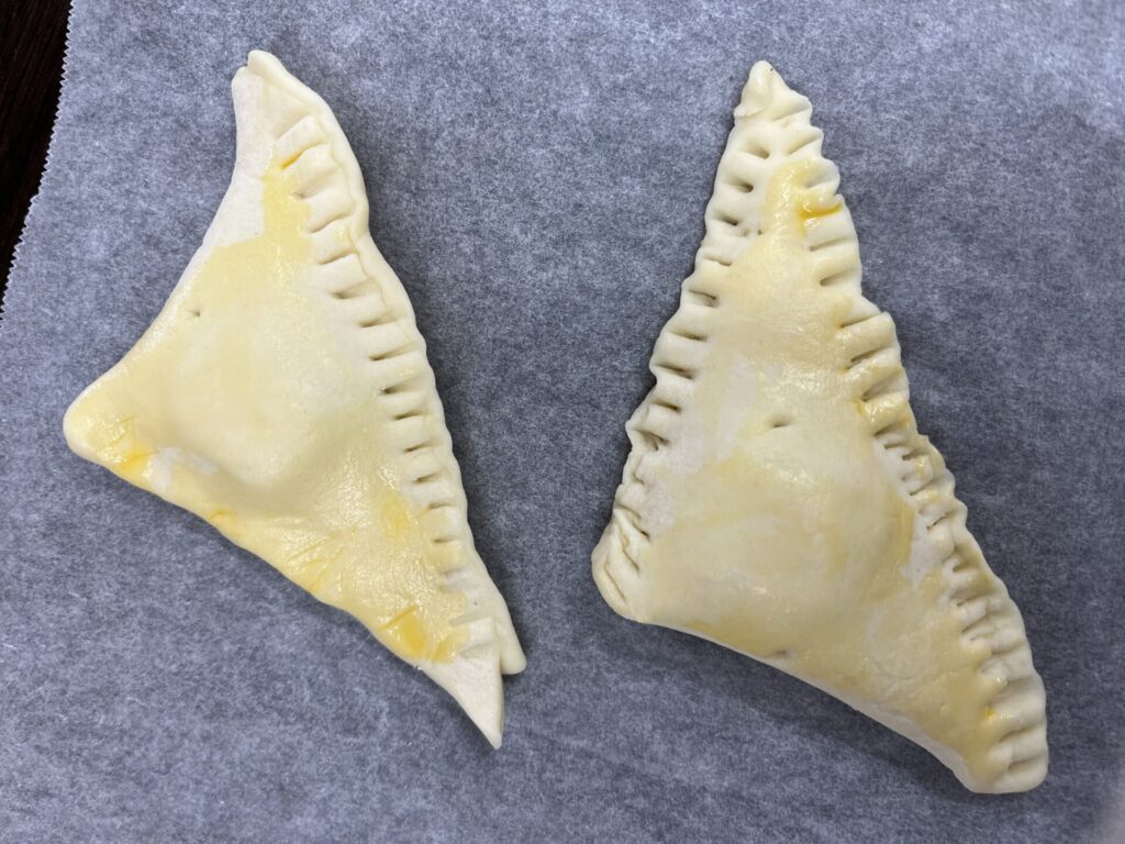 かんべ幼稚園 今日のおやつ🍫💖 2026.02.12 ≪2月12日(木)の手作りおやつ≫・1~2歳児:りんごジャムパイ・3~5歳児:三角チョコパイ(はと組さんのリクエスト) 2歳児おやつ(りんごジャムパイ) 3歳~5歳児おやつ(三角チョコパイ) はと組さんは自分で作って食べました♪